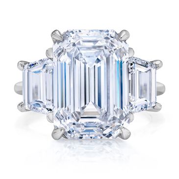 The Royal Asscher Emerald cut diamond is one of our latest creations, giving a whole new look to what most young people favor as a luxurious step-cut diamond. In this case, the Royal Asscher Cut treatment maximizes the traditional long, parallel facets by increasing the traditional 58 facets to an incredible 65 facets, thereby improving on its traditional mesmerizing mirrored staircase effect. Without a doubt, this iconic diamond cut is known for its elegance, depth, and exceptional fire. At first glance, the Royal Asscher Emerald Cut looks like the standard Royal Asscher Cut. But it's easy to see, the rectangular design gives the impression of a diamond 125% larger! Most woman has their favorite diamond cuts, and desire to make a statement, and it is clear the Royal Asscher Emerald Cut delivers that statement. Designed with cut corners to enhance light reflection, this diamond delivers added brilliance and dimension. The seven carefully crafted facets at the bottom maximize sparkle, making it a true statement of sophistication and craftsmanship.